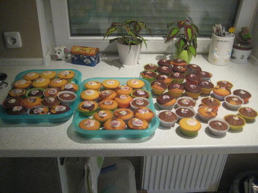 backen, macht bei 2 Klassen plus Lehrerin 60 Stück.