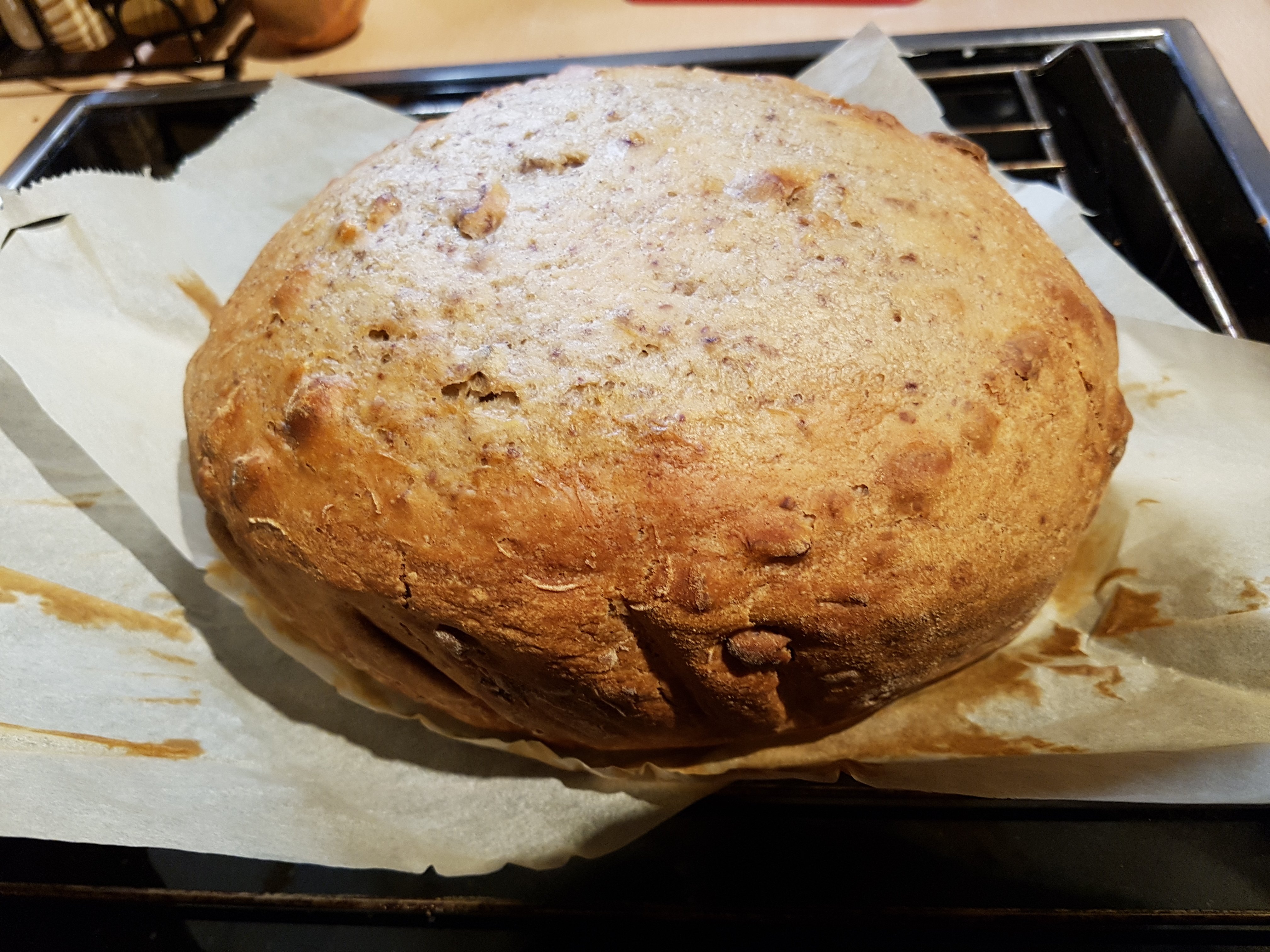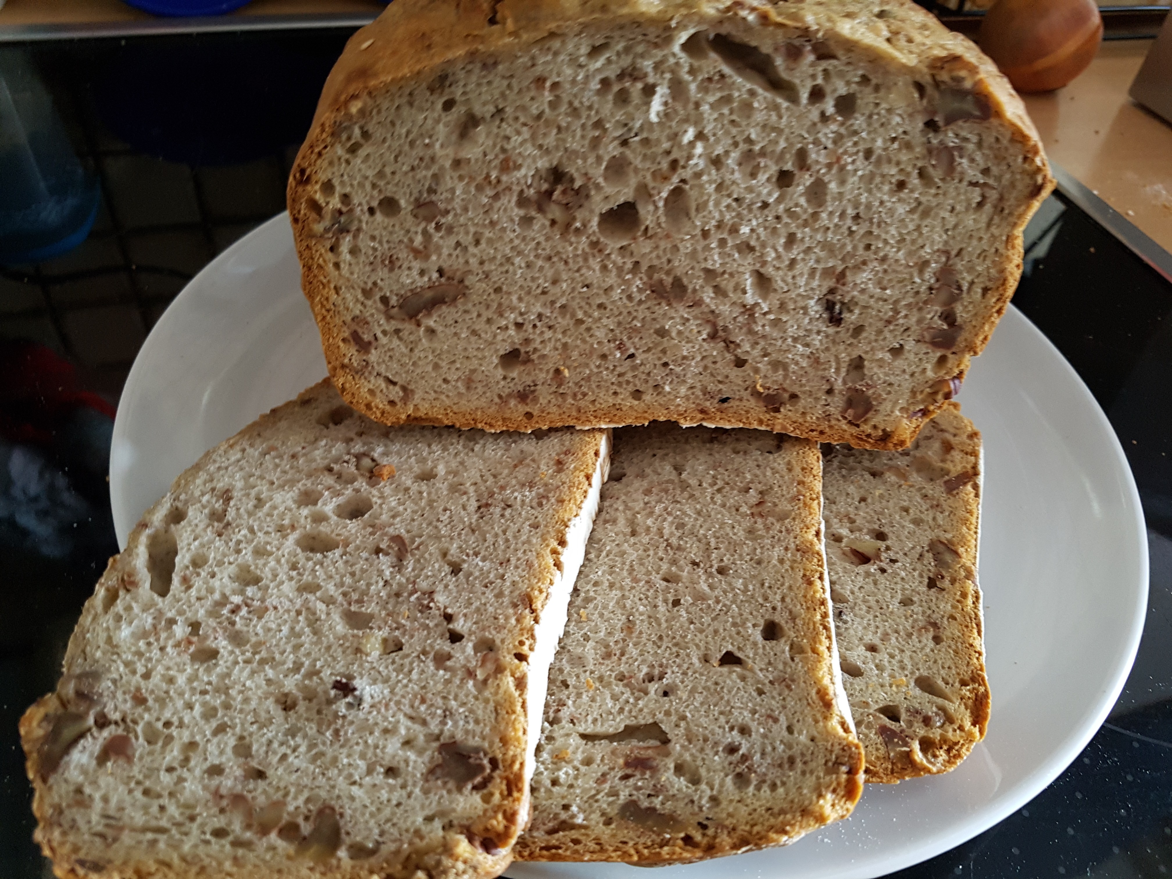 Letzte Woche war ich auf einer Pampered Chef Party, da gabs leckeres Nussbrot, aber sowas von lecker! Alle haben geschwärmt, nur ich konnte es nich essen, weil es mit Walnüssen war.