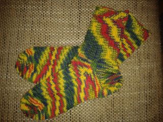 Möchte euch gern erzählen, dass mich der Sockenstrickrausch erfasst hat. Nachdem ich hier die ganzen tollen Modelle von Britt gesehen habe, fing's bei mir total zu kribbeln an. Zufällig hat sich zeitgleich Männel beschwert, dass er kaum noch Socken im Schrank hat, was liegt da näher als gleich für ihn welche zu stricken? Das erste Paar ist ja schon fertig, hab ich auch schon vorgezeigt. Gestern ist nun der erste Socken vom zweiten Paar fertig geworden und sieht toll aus, bin sehr zufrieden. Nun kann ich es kaum erwarten, dass das Paar komplett wird.