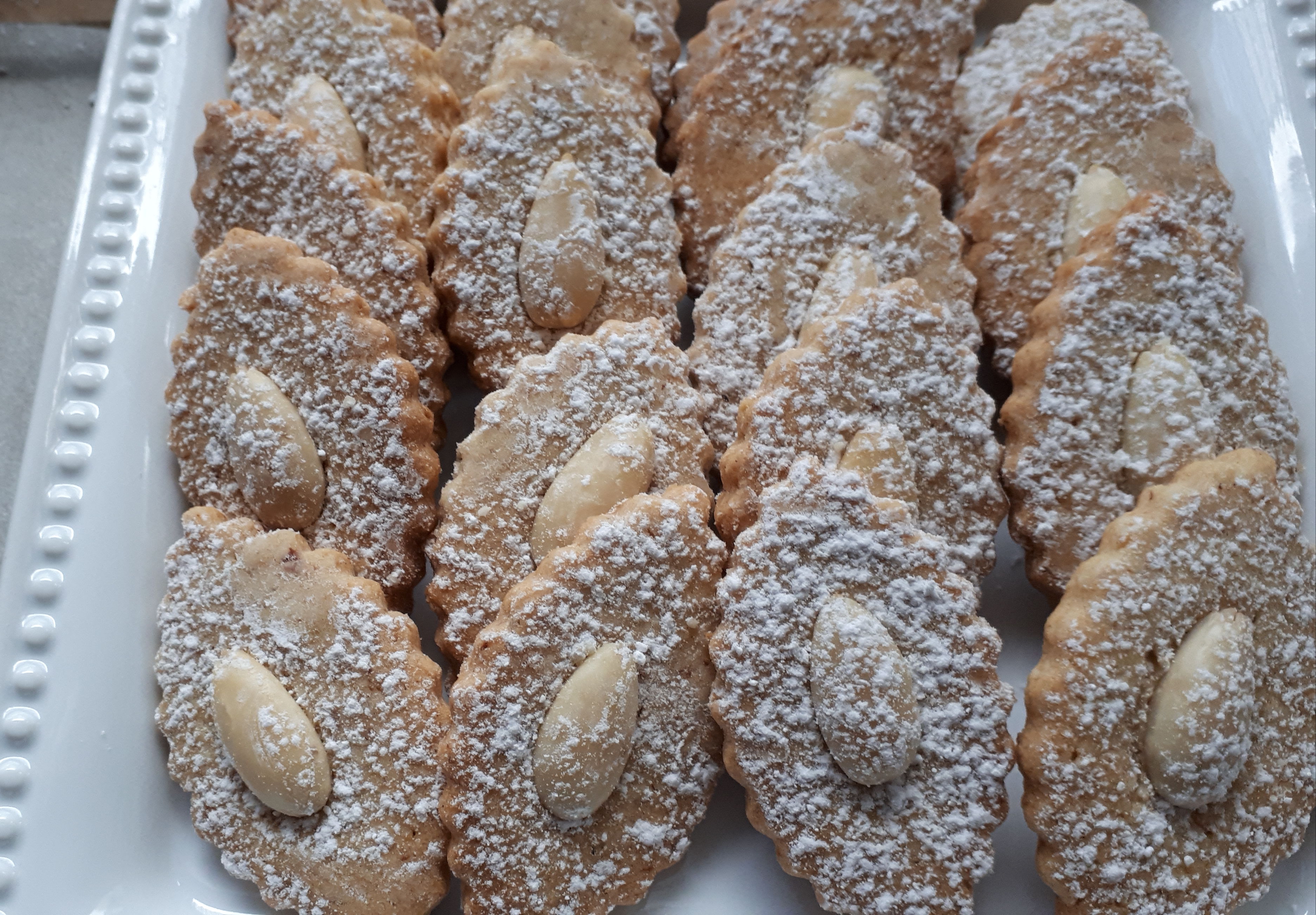 Ich liebe Anis und so sind eben diese leckeren, mürben und knusprigen Anis-Mandel-Plätzchen aus meinem Backofen gehüpft. Drea's Anis-Mandel-Plätzchen Zutaten für ca.60 Stück 250 g Mehl 1 Teel. Backpulver 150 g Butter weich 2 Eigelb 130 g Puderzucker 1 P.Bourbonvanillezucker 1 Prise Salz 2 geh.Teel. gem.Anis 1 Essl.Rum 80 g gem. Mandeln Geschälte Mandeln zur Deko sowie Puderzucker Butter, Zucker, Salz, Eigelb, Rum cremig rühren . Mehl, Backpulver,Mandeln und Anis vermischen und unter die Buttermasse kneten. In Folie gewickelt 1 Stunde kalt stellen. Teig Messerrückendick unter einem aufgeschnittenen Gefrierbeutel auswellen. Ich benutze Teighölzer so wird der Teig gleichmäßig dick. Jetzt Plätzchen ausstechen mit einer Form nach Wunsch und auf ein mit Backpapier ausgelegtes Backblech legen. Mandel mittig leicht festdrücken und bei 170 Grad Umluft ca.10-15 Minuten je nach Backofen backen. Nach dem abkühlen leicht mit Puderzucker besieben. Mein Tipp: Geschälte Mandeln sind teuer, daher mach ich das selbst . Wasser aufkochen -abschalten und die Mandeln 5 Minuten in das Wasser legen. Jetzt in ein Sieb abgießen und auf ein Geschirrtuch leeren und abrubbeln. Die Schale löst sich so ganz leicht.