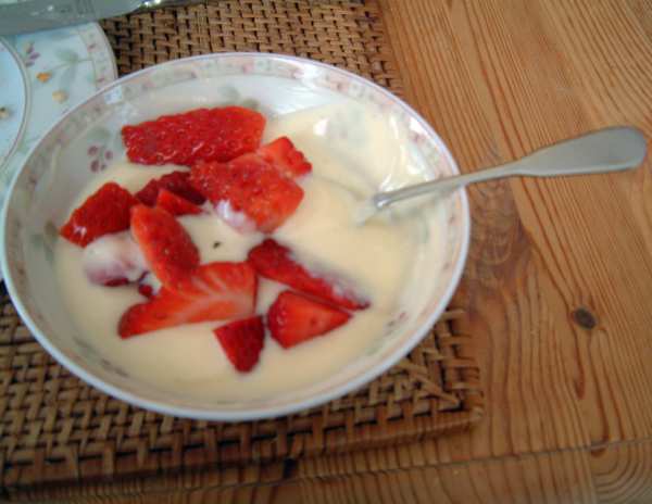 Ich schick euch mal ein paar Fotos von meinem supertollen Geburtstagsfrühstückstisch. Am leckersten waren die Erdbeeren in Vanillejoghurt...mjam...