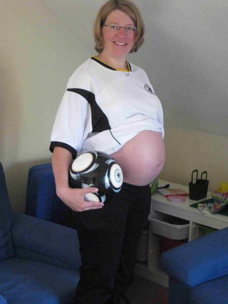 ich bin noch hier auch wenn ich mich bisher kaum beim schreiben beteiligt habe...aber ich habe heute endlich mal ein paar Babybauchfotos im Trikot gemacht...den Ball habe ich mir von der Nachbarin geliehen ;)
