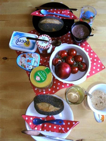 Am Samstag morgen wollte ich erst die Geschirrspüle ausräumen und danach den Frühstückstisch decken. Aber das Bienchen befand, letzteres allein erledigen zu wollen.