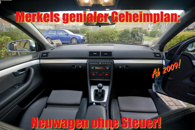N novembersteffi Ohne Titel glücklich 31. Januar 2009 #7 AW: Merkels genialer Geheimplan Seht Ihr das Bild nicht? :???:
