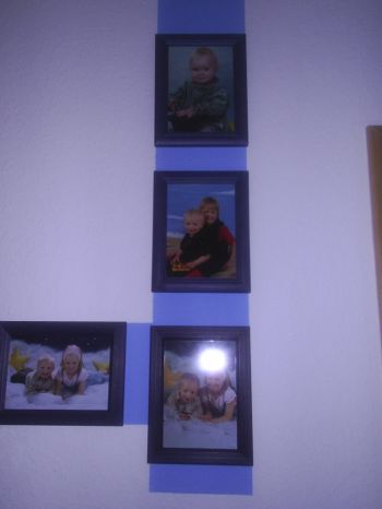 Ich habe nur in der Küche ein paar Streifen gemacht und im Wohnzimmer als Bilderuntergrund in blau. Davon habe ich kein Foto und schaffe es auch nicht mehr heute reinzustellen.