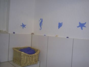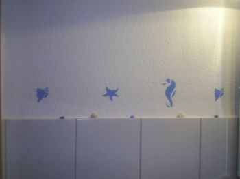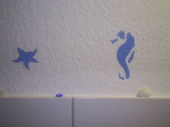 Achja, das Gästeklo kann ich nochmal ablichten , da habe ich mit einer Schablone Meeersteire drauf gemalt.