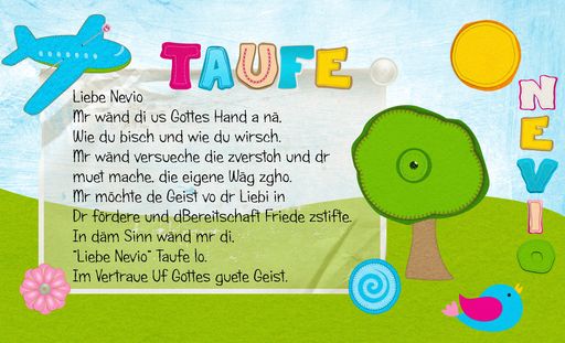 Muttertier Gehört zum Inventar 28. Oktober 2011 #2 AW: Taufversprechen (schweizerdeutsch) Das sieht wunderschön aus! Ich wünsche Nevio und euch eine schöne Taufe!