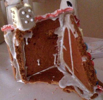 Dieses Jahr komme ich irgendwie nicht dazu Weihnachtskekse zu backen und unser Backofen muss wohl auch erneuert werden. Um trotzdem meiner Lebkuchen Leidenschaft zu frönen gab es diesmal eben ein Lebkuchenfertighaus :-D Hier halten mich sowieso schon alle für bekloppt deswegen und lächeln mich nur milde an wenn das Gespräch darauf kommt. Darum ess ich es auch ganz alleine und inzwischen ist es auch nur noch eine Ruine und bestenfalls als Filmkulisse tauglich.