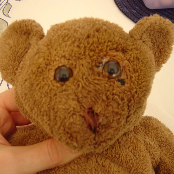 Der Bär....leider schon tausendmal genäht (an den Augen)!