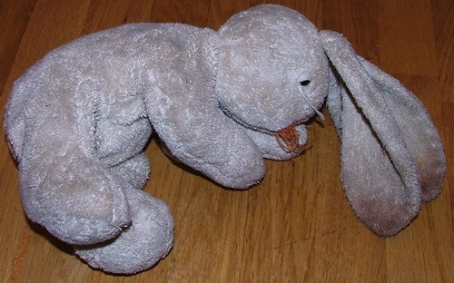 passend zum neuen kinderzimmer hat der hase nun auch ein fußballdress bekommen. das verhindert auch gleichzeitig das auseinanderfallen an manchen stellen
