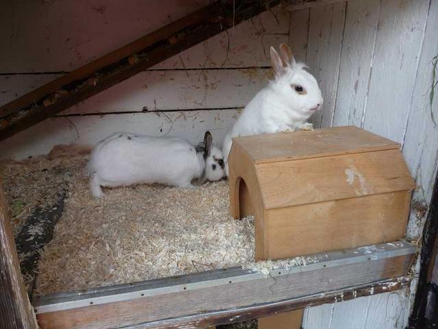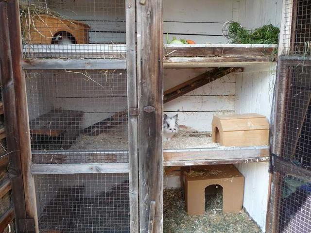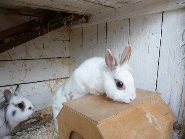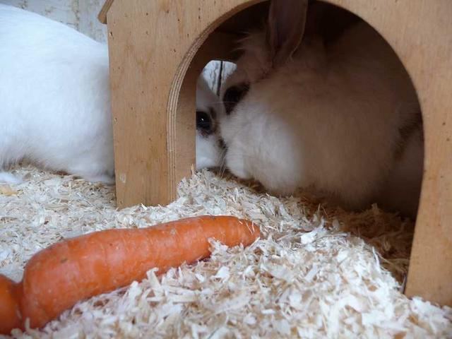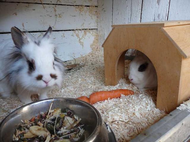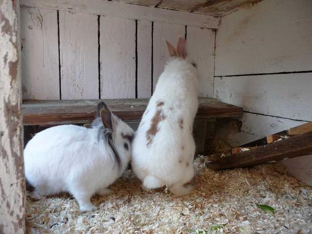 Hab es nun heute versucht, also erst zusammen den Vormittag im Auslauf und dann beide in den 3 Stöck-stall. Die Häsin hat erst mal geschnuppert und alles angekuckt, dann war sie aber gestresst und ist ins Häuschen rein.